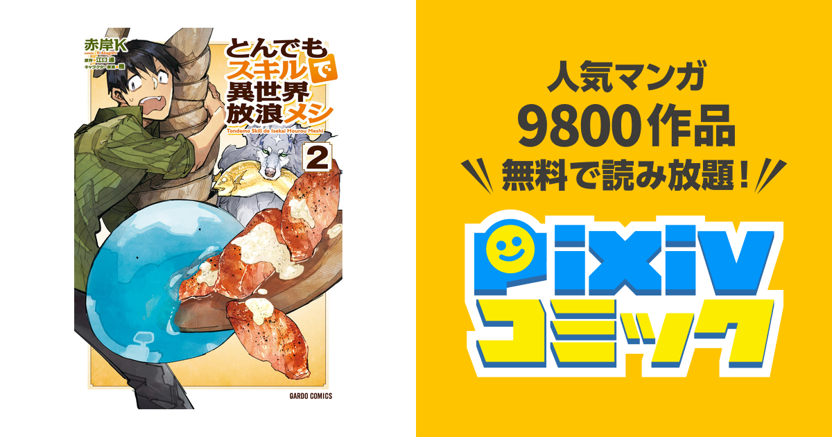 巻 とんでもスキルで異世界放浪メシ 2 赤岸K / 江口連 / 雅 続きを読む 少年・青年 6 pt 無料試し読み 今すぐ購入 お気に入り登録とんでもスキルで異世界放浪メシ 漫画 2巻 発行者 最終更新 年4月17日 金 (日時は 個人設定 で未設定ならば UTC )。とんでもスキルで異世界放浪メシが無料で全巻読める漫画アプリってないの!? と思っていませんか?そんなあなたのために 「とんでもスキルで異世界放浪メシ」が全巻読めるマンガアプリ・サイト を紹介します。 それではさっそく行きましょう。